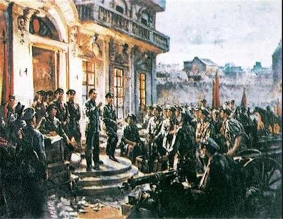 同志们整齐步伐奔向解放的战场,