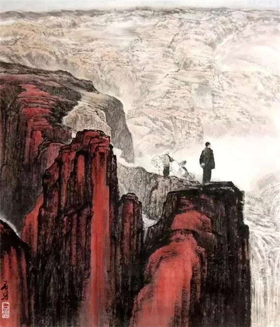 该作品创作于1974年,尺幅巨大,构图完整,经过多次加工,成为李可染的经典构图和革命圣地山水创作的集大成之作。
