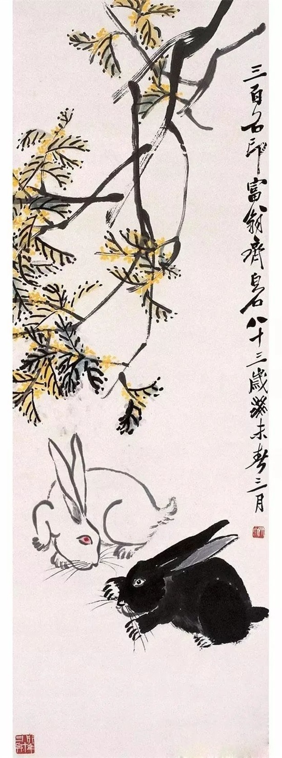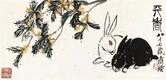 齐白石画兔,笔墨老辣