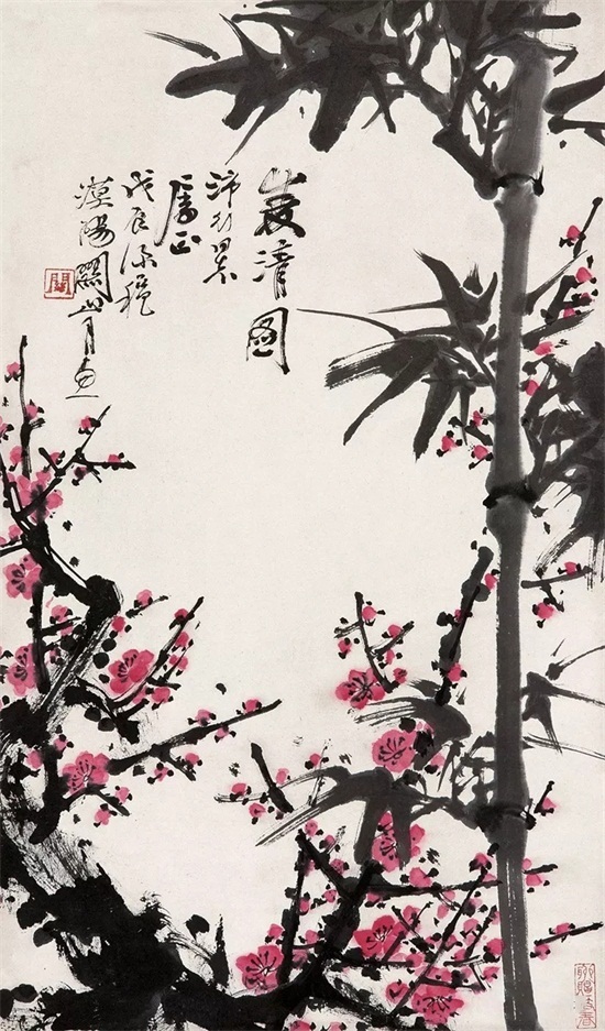 关山月(1912-2000),原名泽霈,广东阳江人。1933年毕业于广州市立师范后任小学教师,其绘画才能被高剑父发现,遂入春睡画院学习。1939年起,从广东出发,到各地深入生活并写生。以山水画闻名于世,坚持岭南派革新主张,其画立意高远,境界恢宏。晚年喜作梅花,铁干繁花,有雄浑厚重之意。代表作品有《长河颂》、《江山如此多娇》(与傅抱石合作)等。
