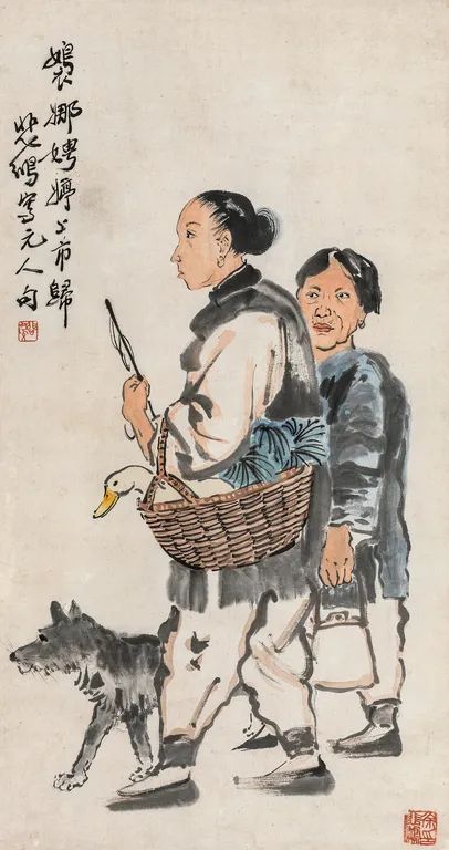 徐悲鸿 归市图 纸本设色