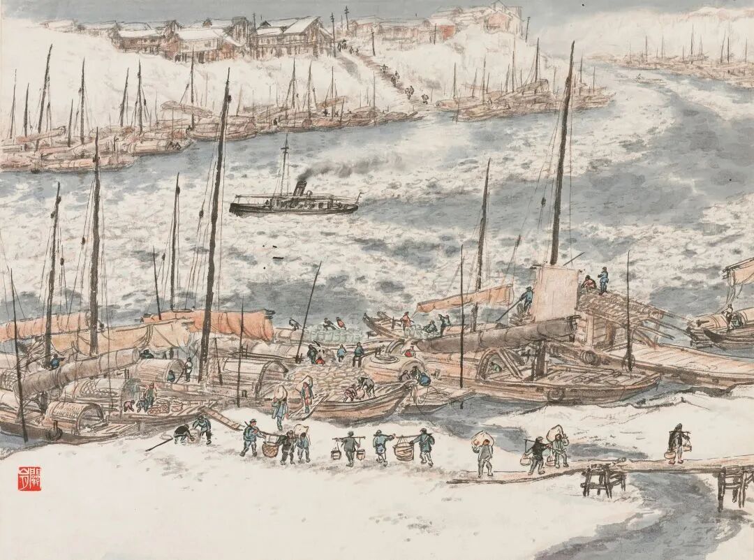 关山月擅画人物、山水、花鸟,崇尚画道革新、“笔墨当随时代”,关注社会民生,深入生活,弘扬主流意识,以昂扬向上、深沉雄健的艺术风格为祖国江山造像。他始终依时代之需不断转换主题,与时代同行、与民众共呼吸、与国家同命运。