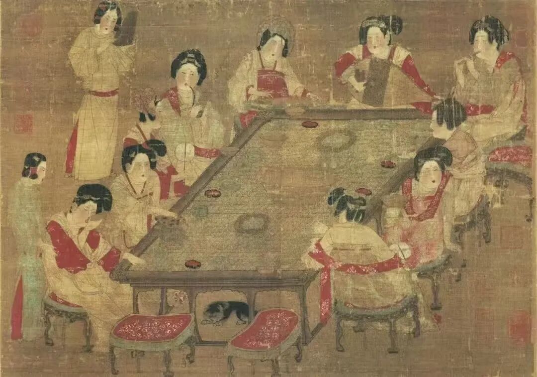 10 位体态丰腴的宫廷贵妇,搭配 2 位侍立在旁的婢女,体现了唐代 “以胖为美” 的审美风尚。画里 12 位丰腴美人围坐开派对,有人弹琵琶、有人吹笙、有人摸鱼托腮,完全是古代版 “闺蜜茶话会 + 乐队 live”,打破了人们对古代宫廷 “严肃压抑” 的刻板印象,充满烟火气和松弛感。