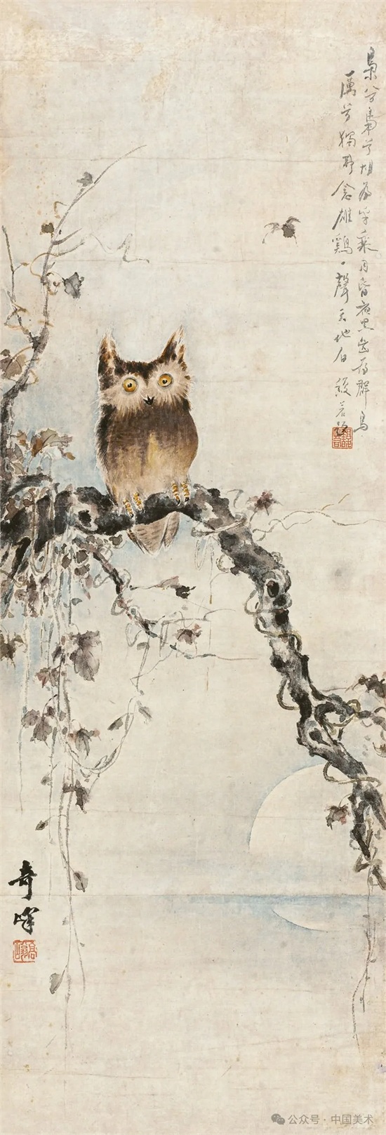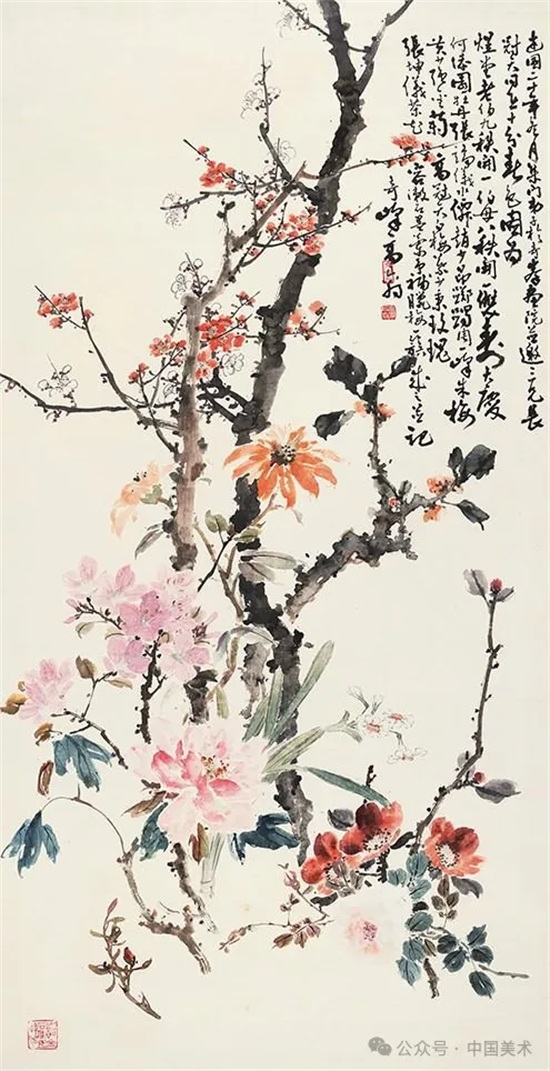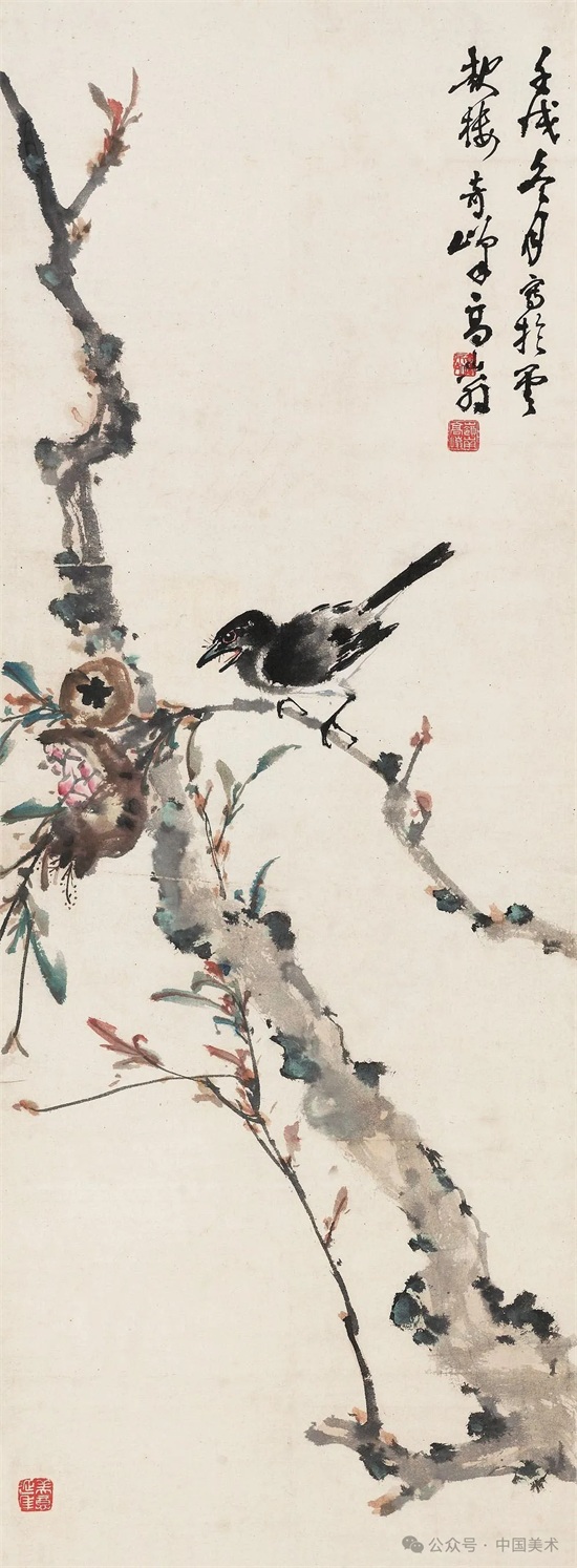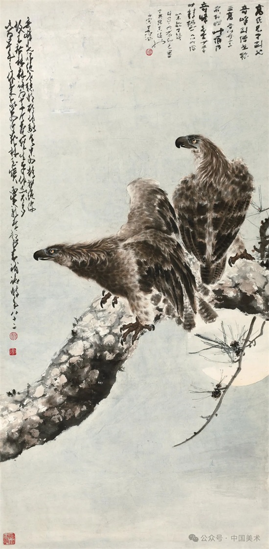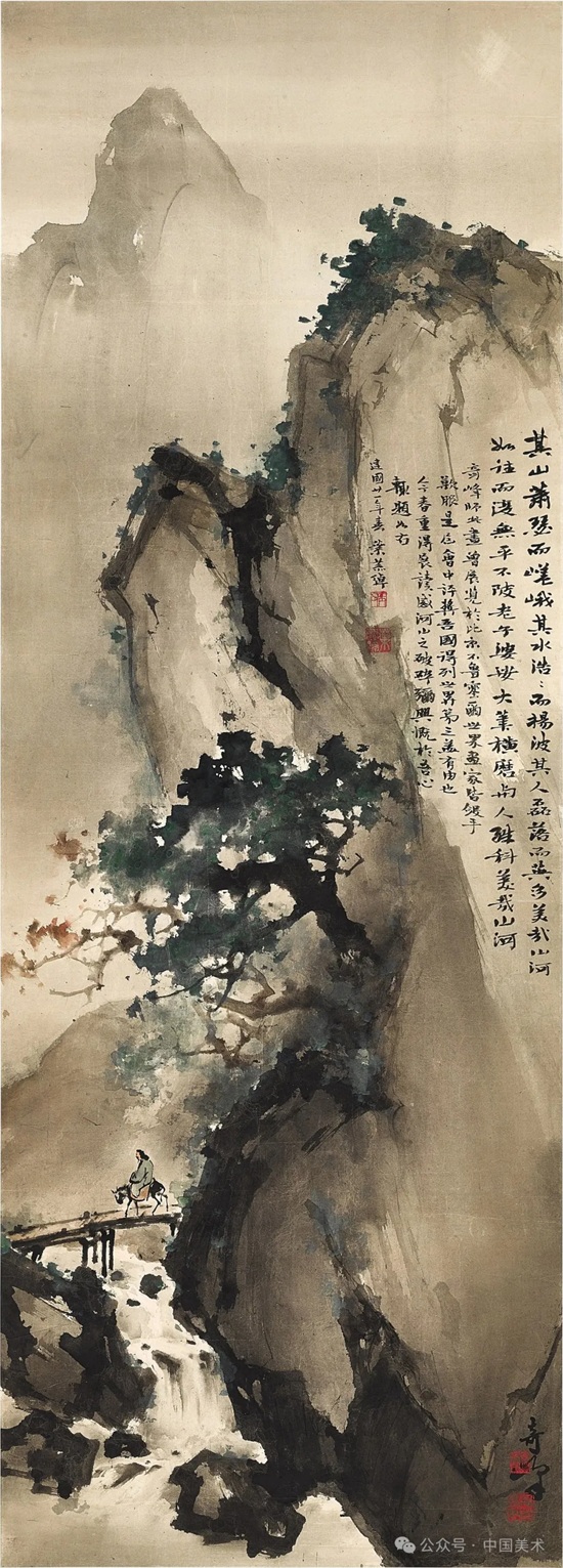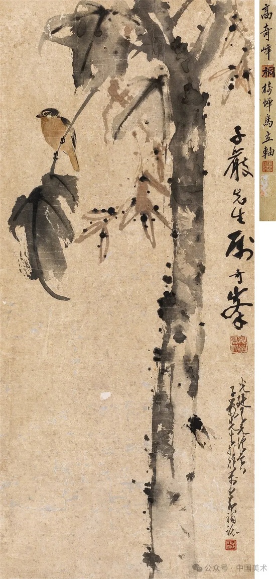20年代中期以后,高奇峰逐渐放弃色彩明丽描绘精致的日本画法,并向传统笔墨形式回归,作品构图简练,笔墨洒脱,具粗犷豪迈之势。