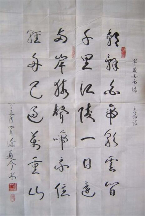 涂通今的书法作品,内容丰富,有为店家题写的应制作品,也有抄写的《七律.长征》或古诗,还能看到不少网友和他及书法作品的合照。