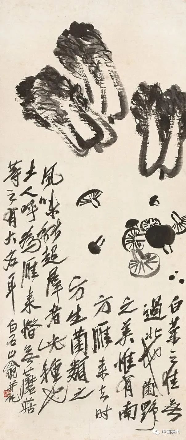 《白菜野菌》 齐白石 109cm×46cm 无年款 北京画院藏