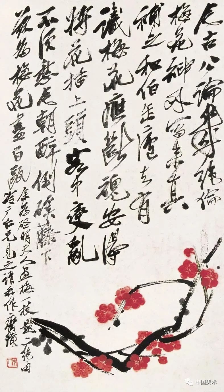 我们看黄宾虹的书法,产生黄宾虹的绘画,齐白石的书法产生齐白石的绘画,潘天寿的绘画其实也是他的书法,一样的。潘天寿书法的功底和内涵,且不评价,但是潘天寿的书法很有骨力,绘画也很有骨力,潘天寿开始是学吴昌硕,后来他认识到学得再好,也只是吴昌硕第二,甚至第二也当不了。后来他就思考问题,他在学习书法的时候提出一个理论,说书法不要学名家,不要学王羲之和颜真卿,因为大家都在学他们,你学了就很难突出出来,他认为要挑选一个大家不大熟悉的,但是很有个性的,而且是自己喜欢的书画家一学就和众人不一样了。