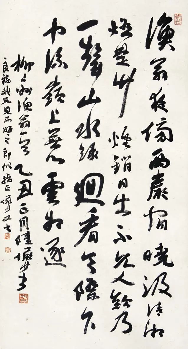 任何一个书画家的作品其实就是他个人真我的“心迹”再现,这个是欺骗不了人的。我们看潘天寿的画,也就是他的字,你可以不承认他是书法家,但你必须承认他的画就是他的字,陆俨少提出来画家要四分读书、三分写字、三分画画,有人提出来七分读书,二分写字,一分画画。