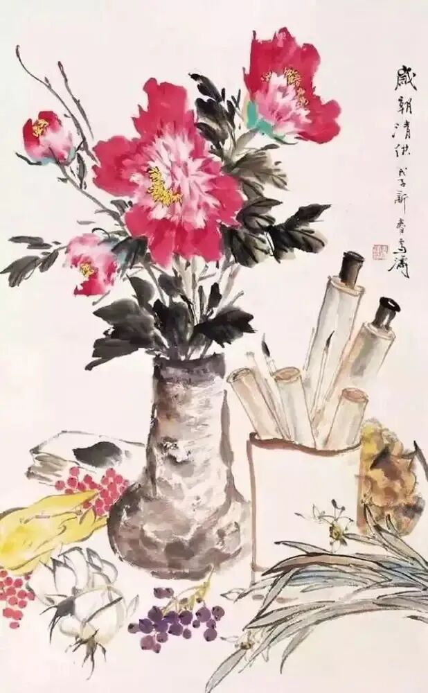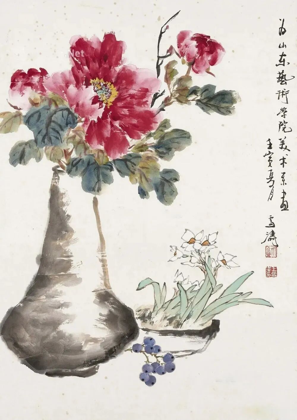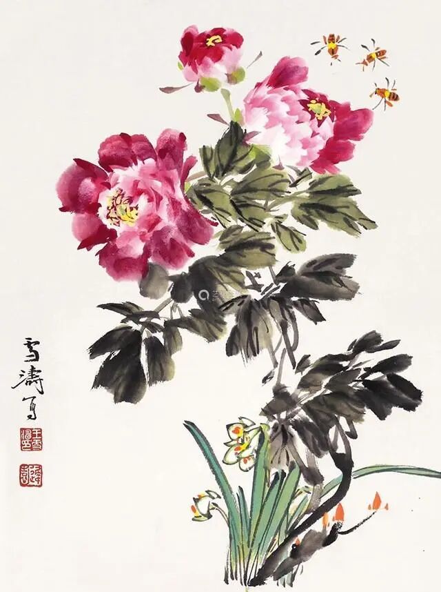 王雪涛作为近现代中国画坛的重要画家,尤以小写意花鸟画闻名。他的作品以灵动的笔触、明快的色彩和生动的意境见长。