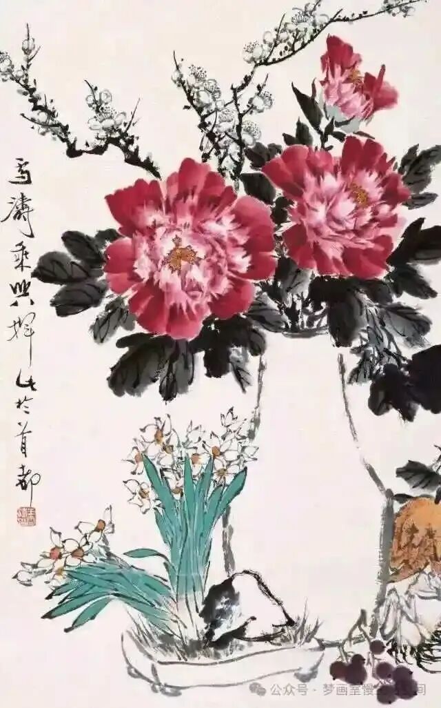 王雪涛的小写意风格介于工笔与大写意之间,既保持了水仙的形态真实感,又通过笔墨抒发了个人情感。其水仙画作并非一味追求孤傲,而是透露出对自然生命的亲切观照,兼具文人的雅致与民间艺术的活泼。