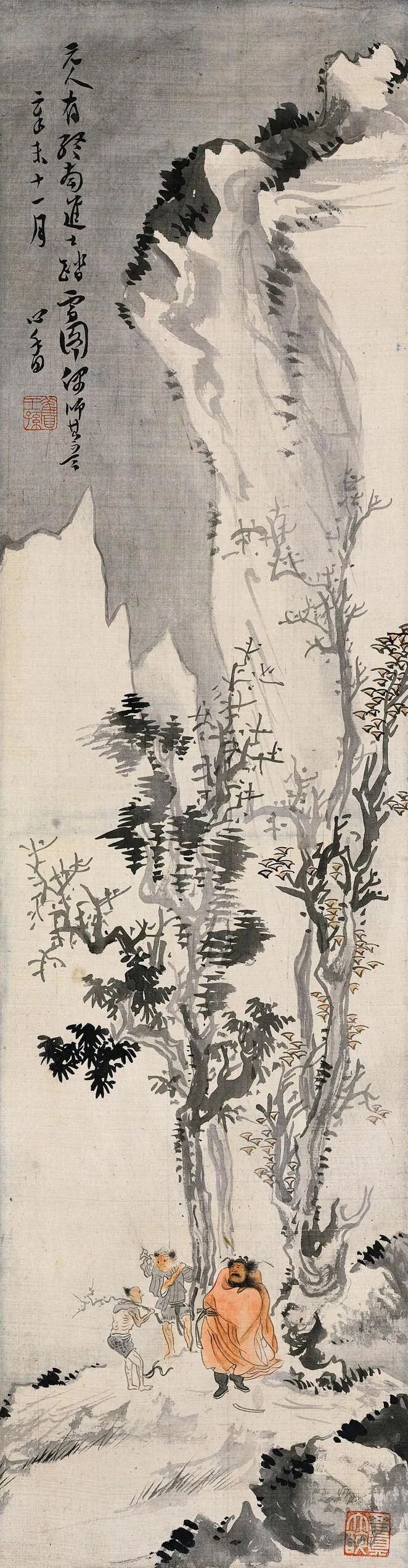 题识:天际乌云重,林中雨雪寒。柴门掩林壑,应是卧袁安。心畬。