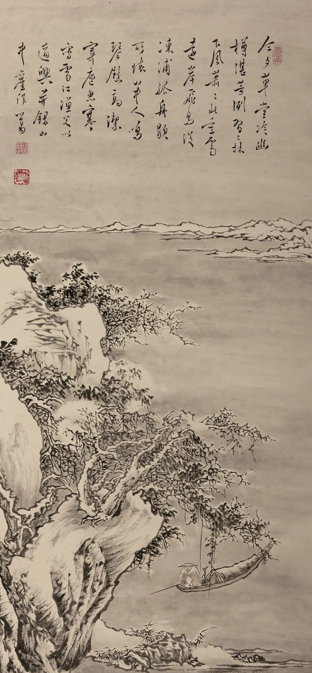 今夕草堂冷,幽樽湛芳冽。习习林下风,萧萧北空雪。远岸飞鸟没,冻浦孤舟歇。所怀山中人,鸣琴慰高洁。寄庐忽寒写雪江渔父以适兴并录山中旧作。心畬。