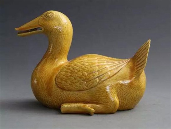 黄釉浅浮雕鸭