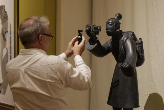 在墨西哥首都墨西哥城,一名市民在为展品拍照。