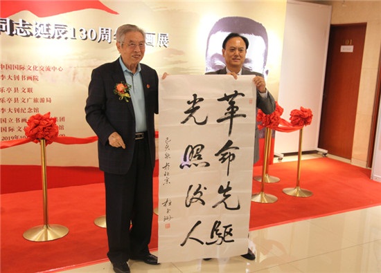 本网讯:为庆祝中华人民共和国成立70周年,纪念中国共产党主要创始人之一李大钊同志诞辰130周年,由中国国际文化交流中心与李大钊书画院主办,乐亭县文联、乐亭县文广旅游局、李大钊纪念馆、国立书画文化发展集团承办的“纪念李大钊同志诞辰130周年书画展”于10月22日在中国国际文化交流中心国际文化交流艺术馆开幕。