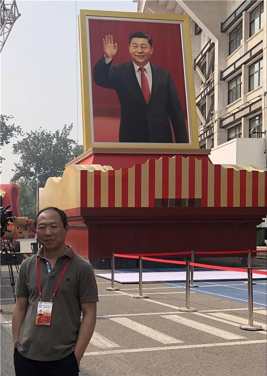 新中国成立70周年庆祝大会上邓小平同志的巨幅画像由我负责绘制,对我来说,这是一个光荣的政治任务,又是一次专业水准的考验。前期准备和绘制过程中,我始终保持最大限度的尽心尽力,力争完美地完成任务。