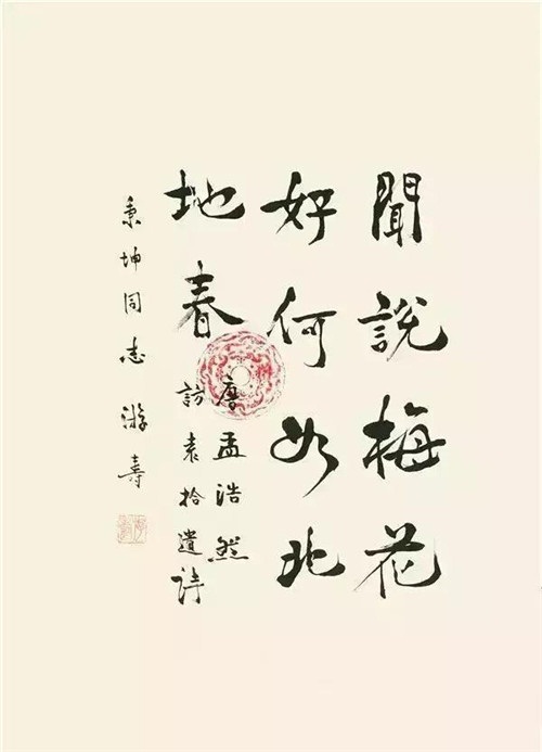 游寿先生书法艺术亦臻炉火纯青之境。熔篆、隶、真、草于一炉,汇数法而归一家,编众工以成己妙。点画于瘦劲生涩之中,偶用丰腴之笔。刚柔相济,燥润间出,瘦 处如铁,腴处如玉。结字、章法浑然天成,大巧若拙。格调高古醇厚,风骨凛然,显出儒雅学者风度和浩然磊落之气,耐人寻味,时人誉为“秦风汉骨”。