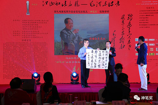 神笔奖网山东频道新闻中心报道(李宏迎)江山如此多娇—毛泽东诗意•“神笔奖”山东省选区书画巡展暨友泰公益晚宴,2017年10月14日下午在济南山东政协大厦隆重举行。