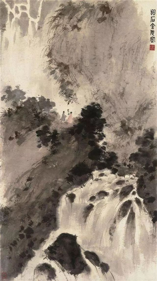 既然傅抱石先生爱好古乐,那么笔者就当他是“鼓琴妙手”伯牙在世,即使弹奏气势雄浑的《流水》也胸有成竹,抚琴时物我两忘、心手合一,琴音铿锵激越处声如崩崖裂谷,深沉凄婉处若涓涓山泉、沉静月光。正如古人所说:“琴之大小得中而声音和,大声不哗人而流漫,小声不湮灭而不闻,适足以和人意气,感人善心”。也就是控制好轻重缓急的适当节奏,做到高音宏亮浑厚而不杂乱噪耳,低音轻若游丝而连绵不绝,这样才能体现出琴之特有的音乐品质与深刻的内容内涵及精神气质来。当然,伯牙鼓琴是须要钟子期这样善听的知音来意会的欣赏傅抱石的画也是一样。若你刚入手就狂涂滥抹还说自己的乱画和傅抱石一样,那么,弹棉花的也有节奏和规律,你也可以认为这是音乐,听伯牙鼓琴你亦觉和隔壁弹棉花之音没甚区别,那么你也只有去做弹棉花的知音了。最后可能笔者会忍不住再顺便问一句:“朋友,干吗非要学艺术呢?