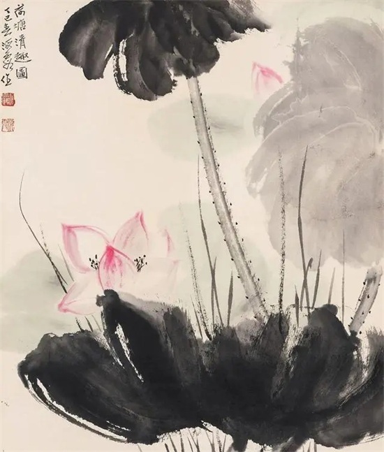 213何海霞 丁巳(1977年)作荷塘清趣图 立轴 纸本设色