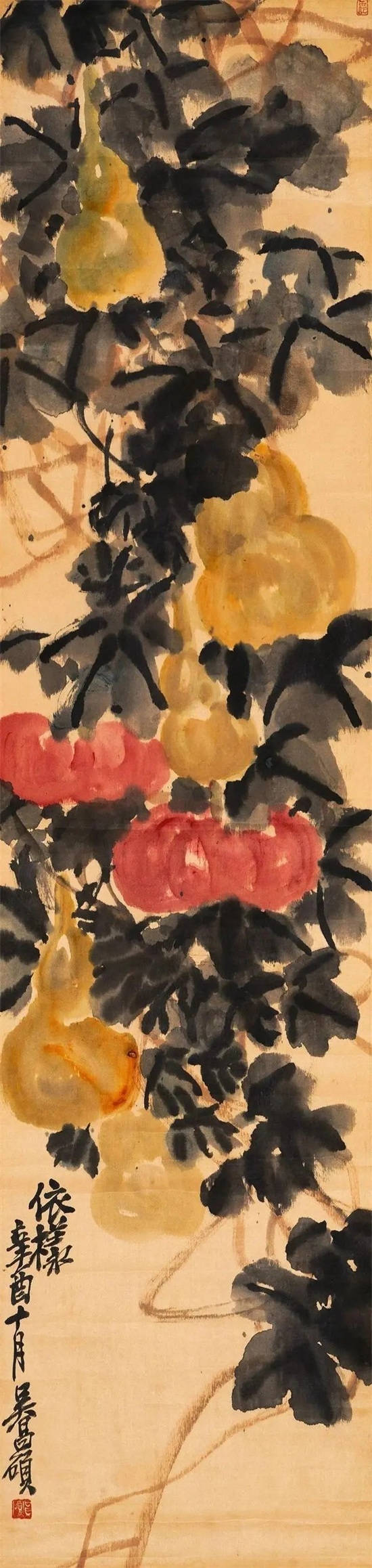 226 吴昌硕 辛酉(1861年)作依样 立轴 绫本设色