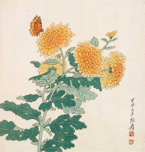 234 张大千 甲申(1944年)作菊花 镜芯 纸本设色