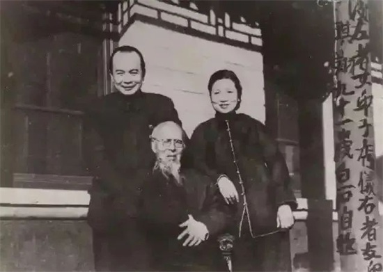 1951年,黄琪翔夫妇与中国国画大师齐白石合影,右边字为白石大师亲笔所书