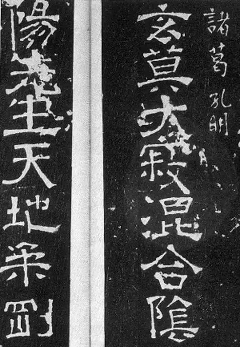 再者,北宋集帖确认为亮书者,尚有大观三年(1109)刊刻《汝帖·玄莫帖》,其帖目明确帖主为诸葛孔明,隶书二行十四字作:玄莫大寂混合阴阳先生天地柔刚。