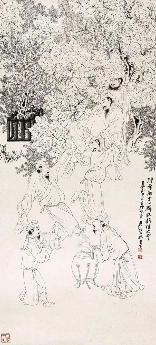 在人物形象上,张大千的人物画开始呈现出更加饱满和生动的特点。他笔下的人物形象不再是单一的文人形象,而是融入了敦煌壁画中佛像的庄严、仕女的婀娜、武将的英武等多种元素,使得人物形象更加丰富多彩。