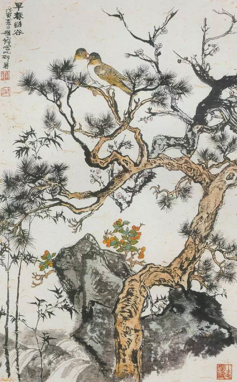 程十发 早春幽谷 纸本设色