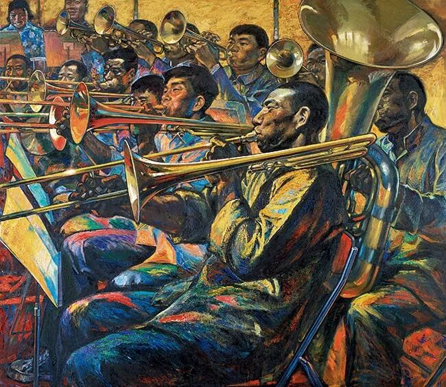 张彤云、尹国良 《高唱革命哥》 布面油画 140x150cm