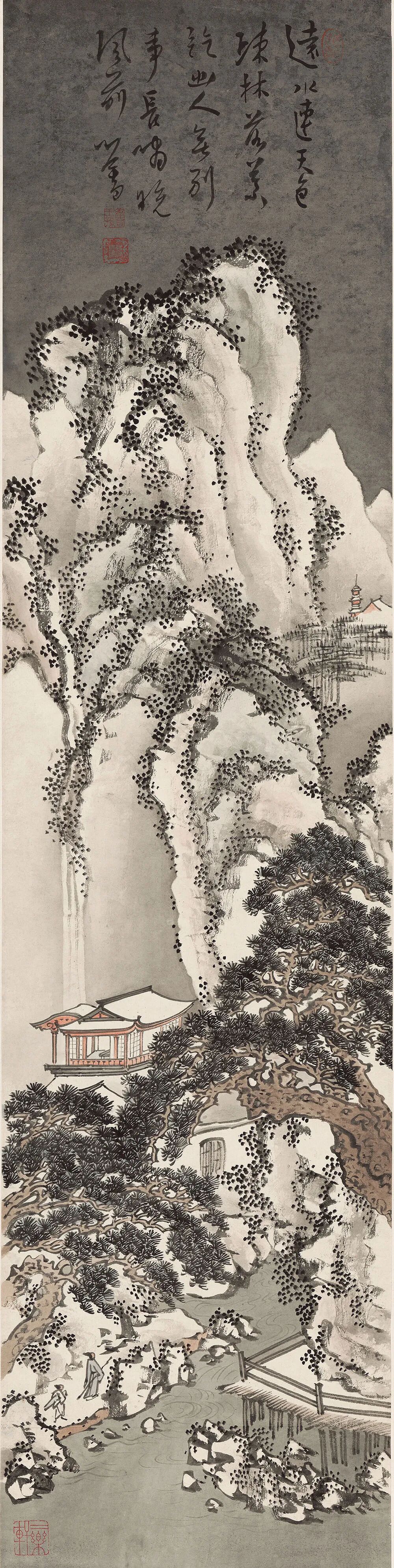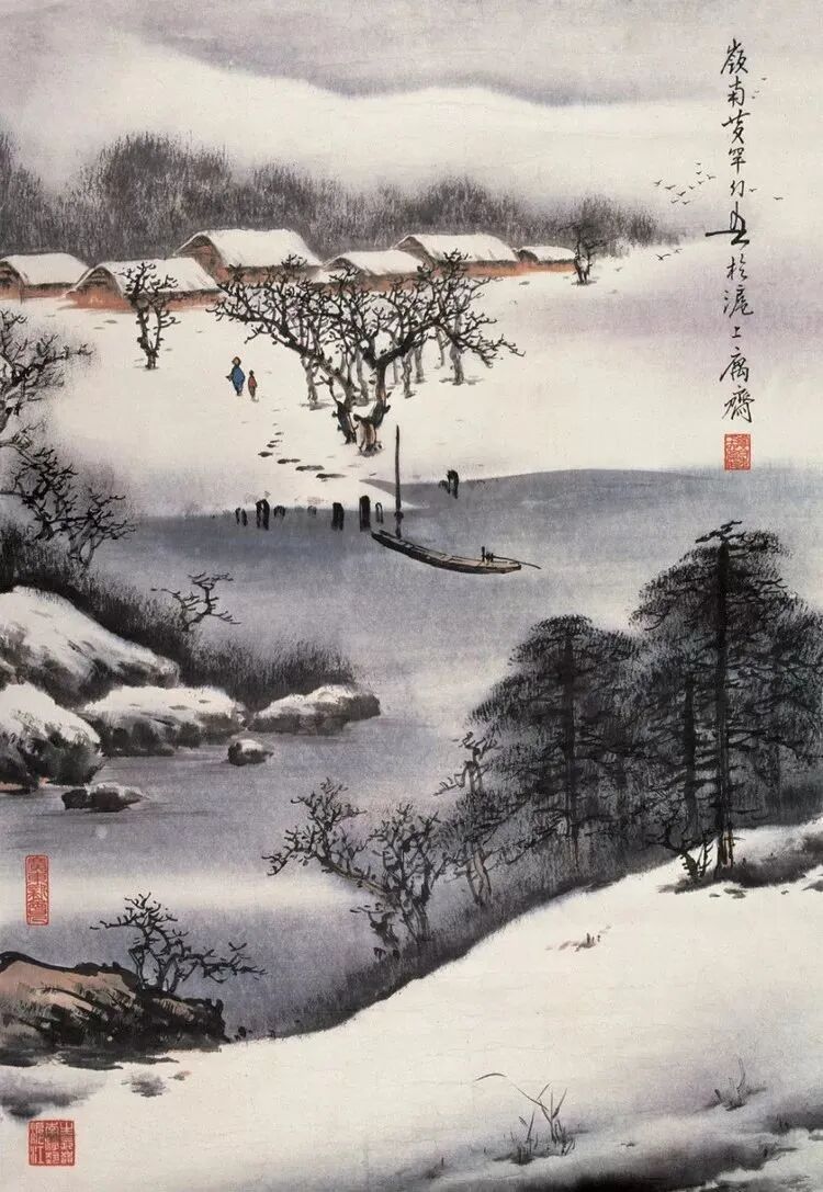 欣赏溥心畲的雪景山水,画作扑面而来一股萧疏高逸之风,古雅清寂中平添了一层韵味,让人不由想到了白居易的这首小诗: