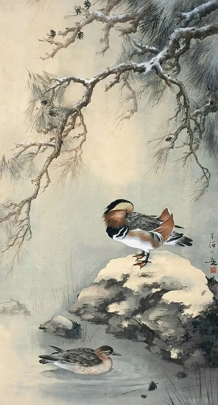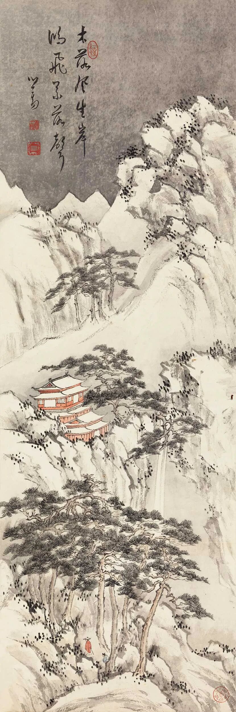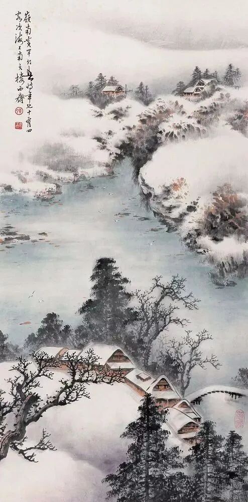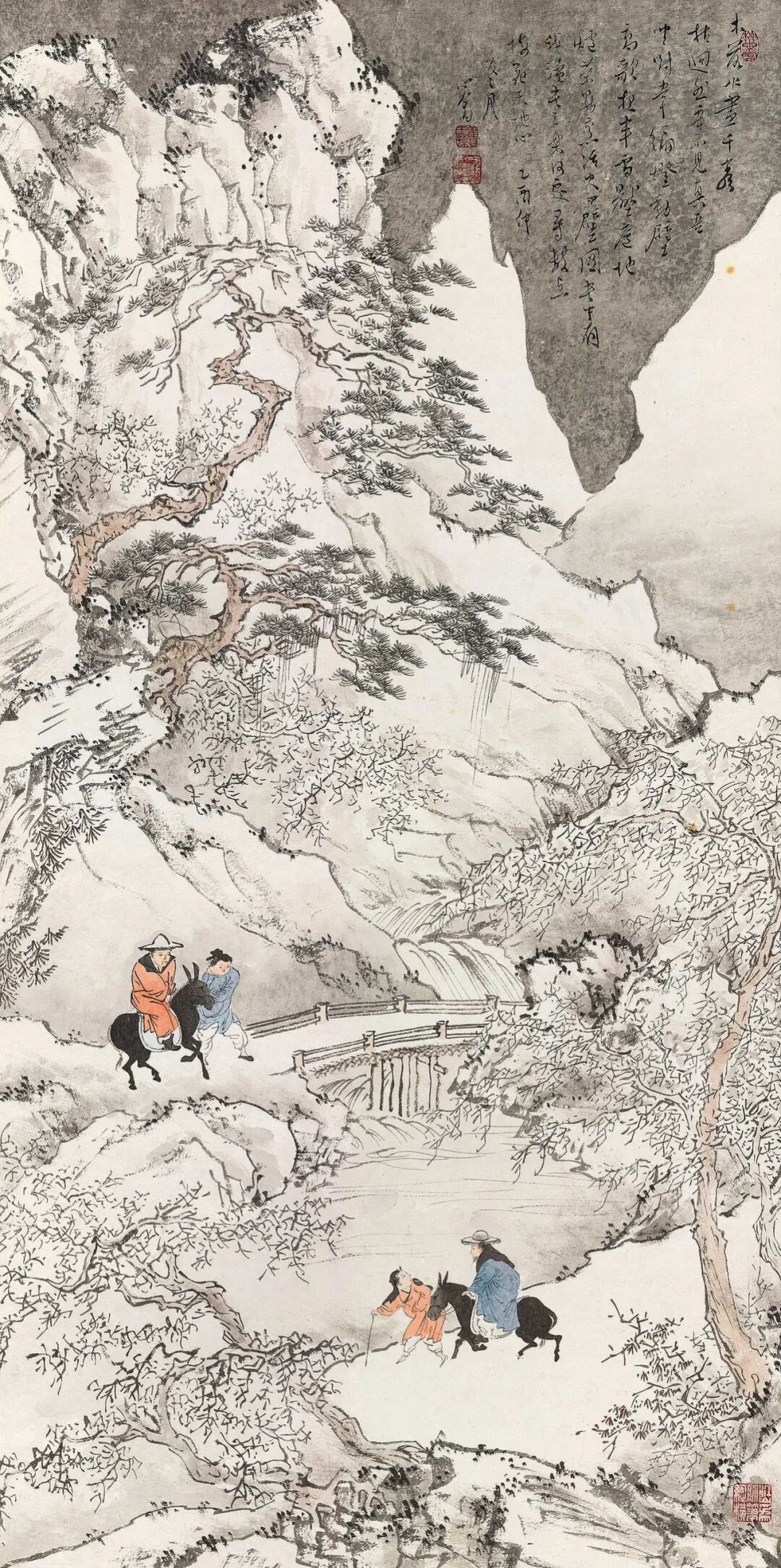 溥心畲喜欢画雪景山水,其雪景山水不事雕琢,用笔空灵,设色清雅,表达了画家对淡泊生活的向往,张大千曾赞扬到:“并世画雪景,当以溥王孙为第一。”