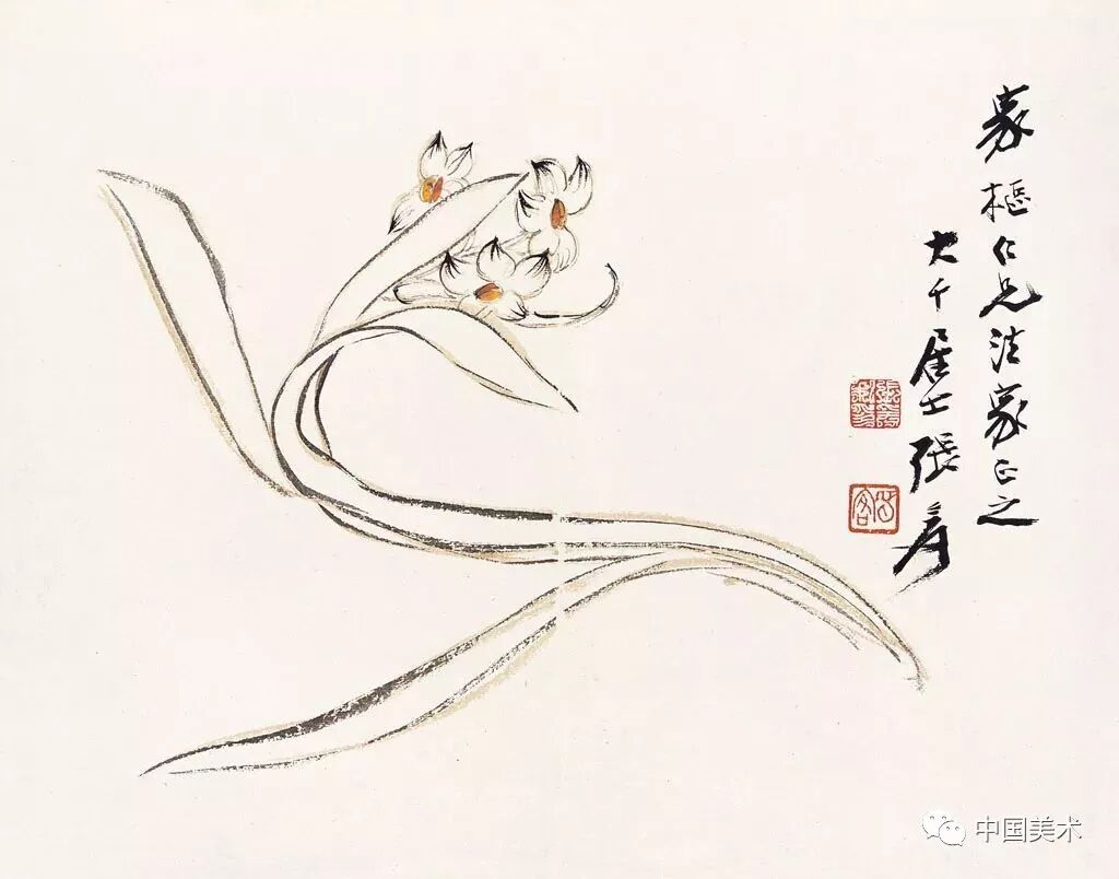 “虎痴”张善孖笔下的山林虎啸,曾有“张水仙”之誉的张大千的水仙,一威风凛然,一风姿绰约,足见兄弟二人之迥异面貌。
