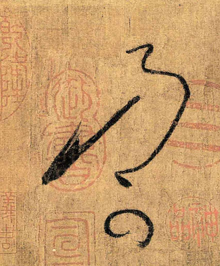 此帖两行十四字,内容为“苦笋及茗异常佳,乃可迳来。怀素白。”从字句上看应为一则手札,所书圆瘦劲健,错落有致。在用笔上以篆书笔法入草书,旋笔藏锋,笔画刚健,可谓超神入妙。通篇字数虽少,却神采飞扬,充分地体现了怀素草书的艺术特点。