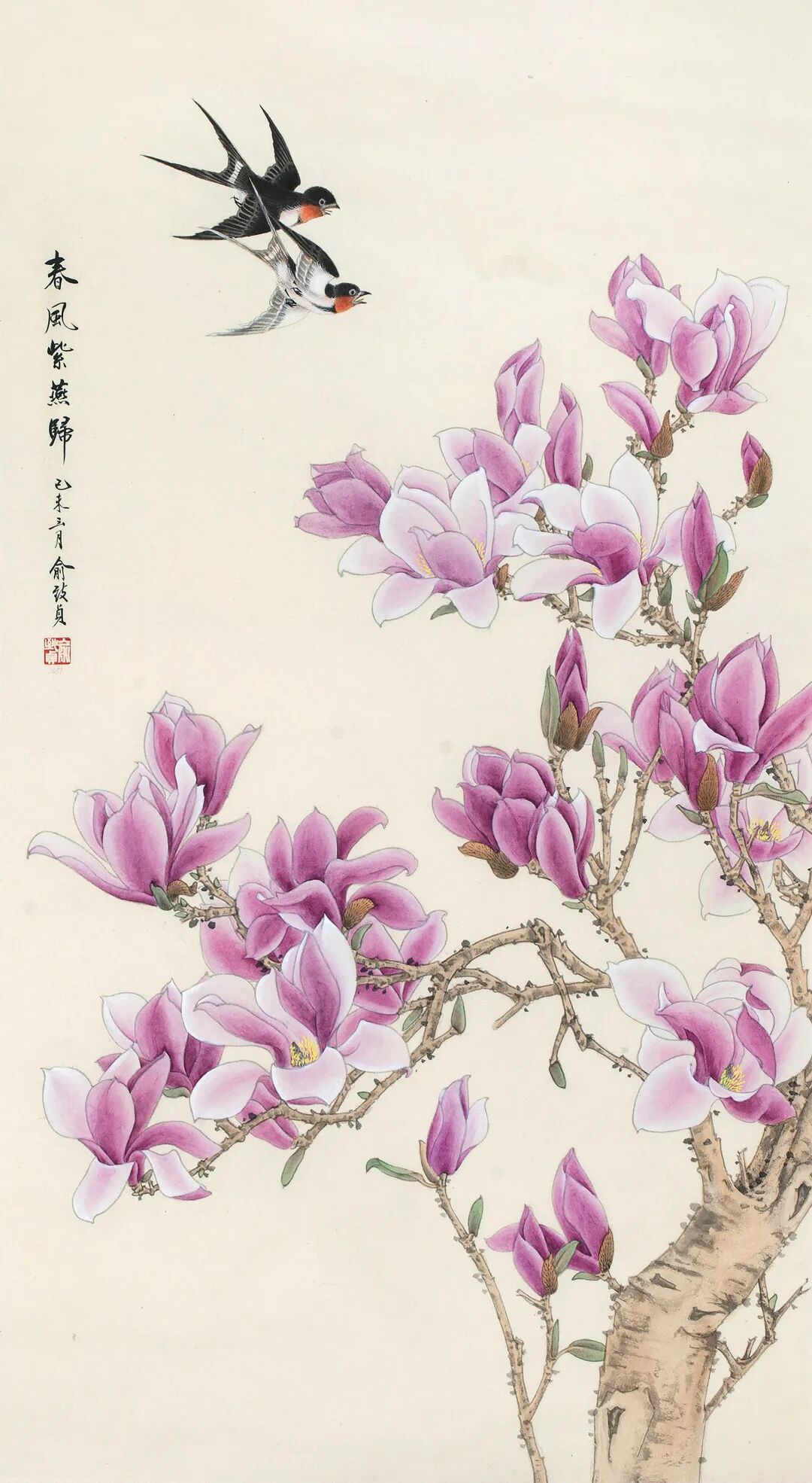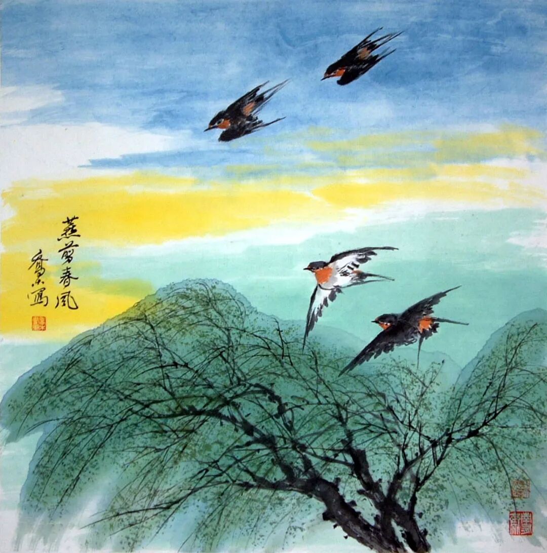 燕剪春风 乔木 无年款 68.5×68.5cm