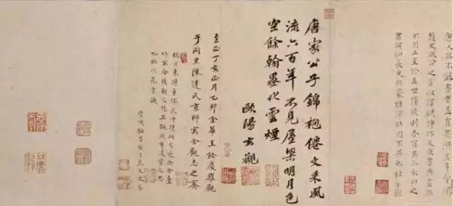 谪仙书传世绝少,尝云:欧、虞、褚、陆真书奴耳。自以流出于胸中,非若他人积习可到。观其飘飘然有凌云之态,高出尘寰得物外之妙。尝遍观晋唐法帖,而忽展此书,不觉令人清爽。