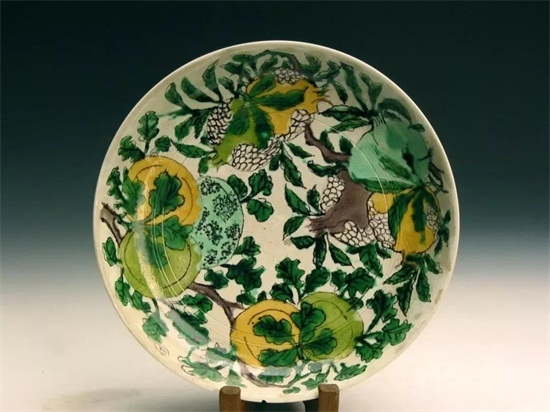 黄地绿彩是低温色釉釉上彩品种之一,以黄色釉为地,用绿色在锥刻...